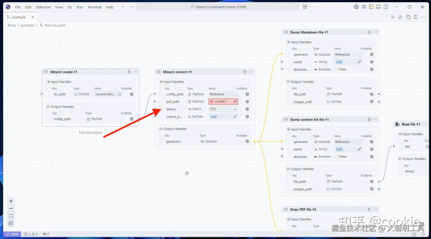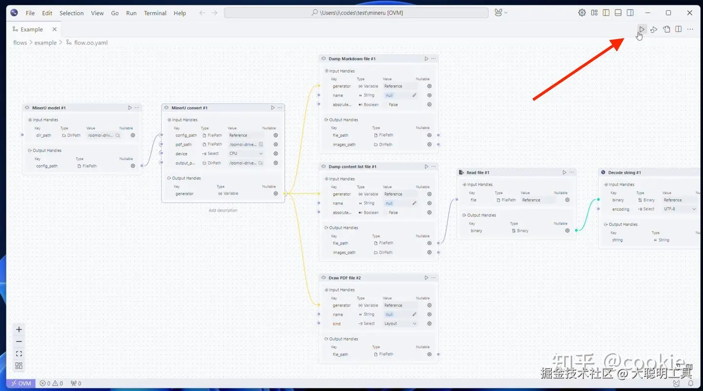 不过 MinerU 的环境着实难准备,我推荐给好几个小伙伴,都没能在自己的设备上跑起来(即便他们能熟练使用 anaconda)。为此我准备了一个 oomol 流程图,并把它开源了(MinerU)。利用 oomol 能在设备上开启一个 Linux 虚拟环境的特性,这个流程图能确保你的设备只要能成功安装 oomol,就基本能正常运行这个流程图。
