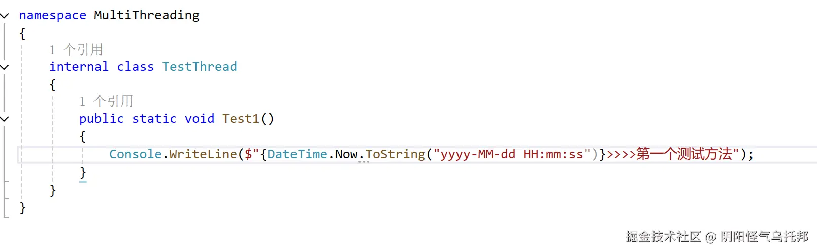 Console.WriteLine($"{DateTime.Now.ToString("yyyy-MM-dd HH:mm:ss.fff")}>>>>正常代码");