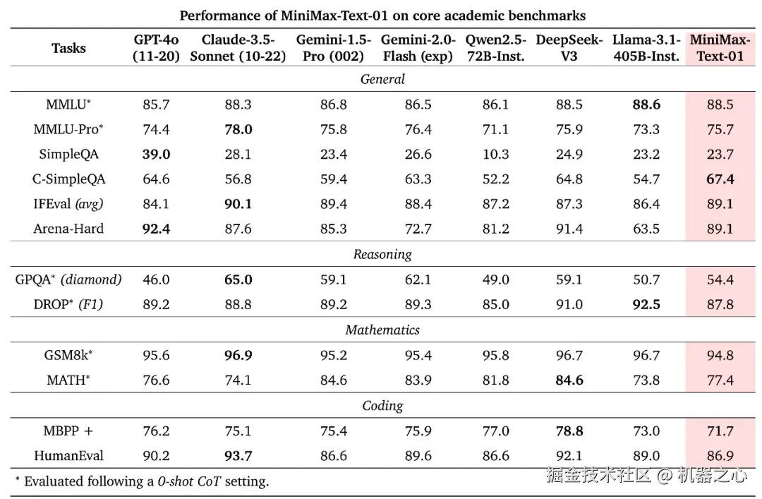 MiniMax-Text-01 基准成绩优秀