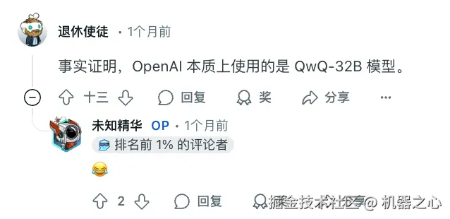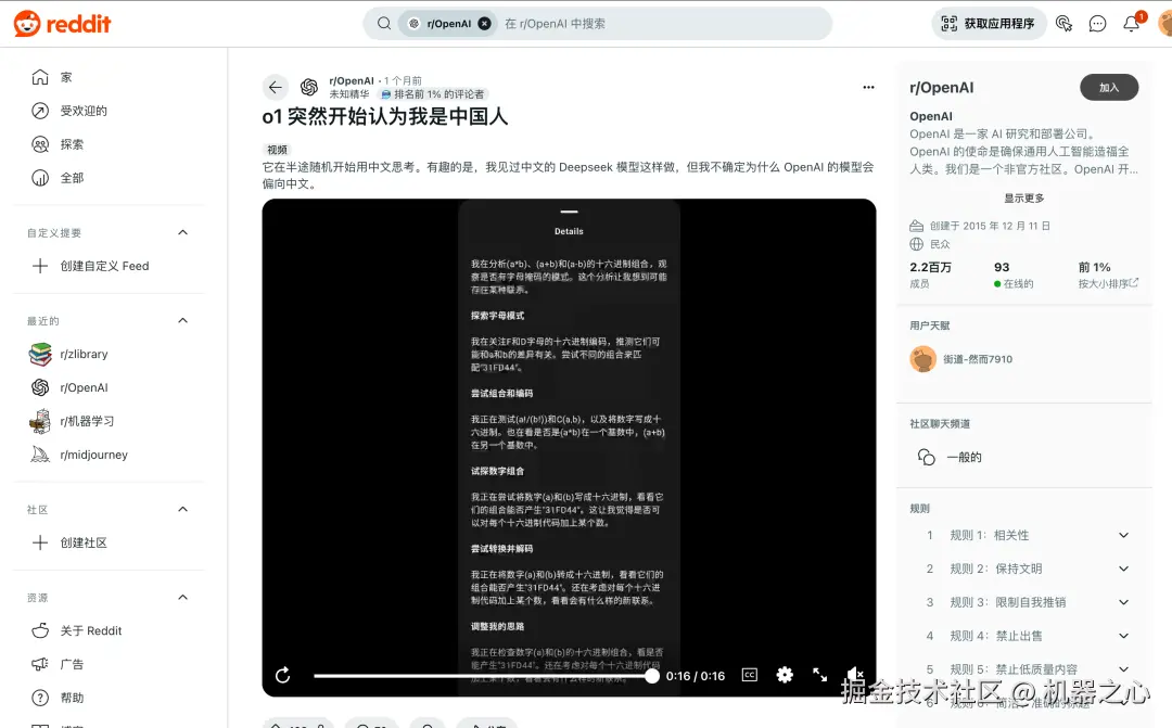 这件事先在 reddit 上掀起了一阵讨论,匿名发帖者表示:「我只见过 Deepseek 的模型这样做,但我不知道为什么 OpenAI 的模型会突然偏向中文啊!」