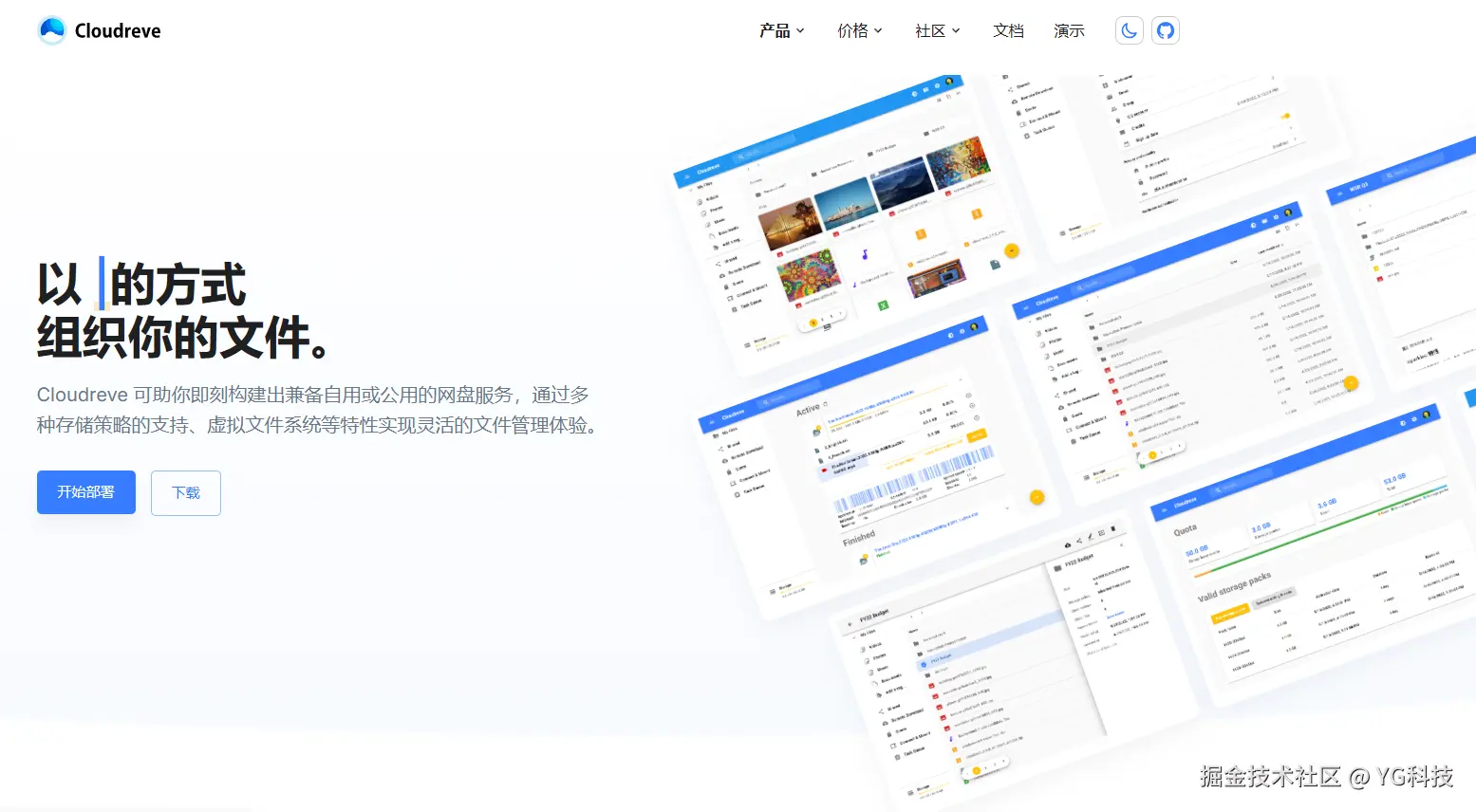 来到 Cloudreve 官网,点击官网中的下载即可进入 Cloudreve 的下载页面。