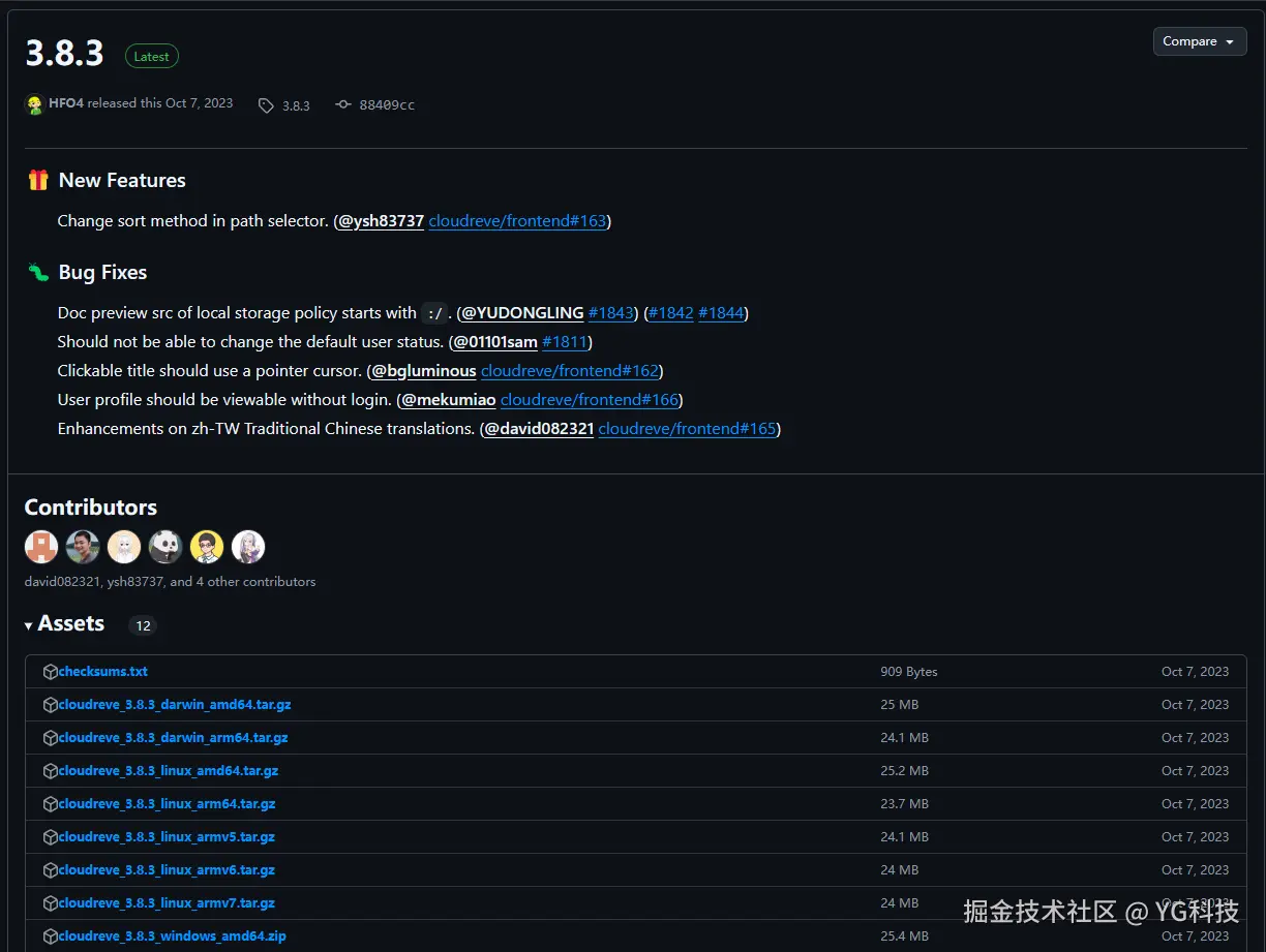 找到最新版本,下载适合你服务器系统的安装包���,我使用的是 CentOS,直接下载 cloudreve_3.8.3_linux_amd64.tar.gz 即可,如果没有适合你服务器系统的安装包,可以使用 source.code 源码包在自己平台的操作系统进行构建,从而在自己的系统上进行安装。
