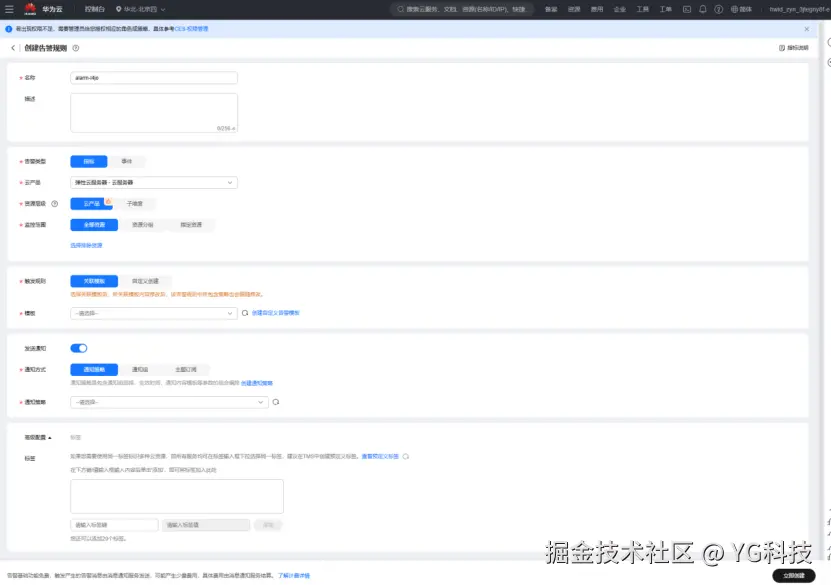 如果用户尚未配置过告警通知,可以按照华为云的指引进行设置,以确保告警信息能够在异常发生时及时传达给相关负责人员,从而快速采取行动。