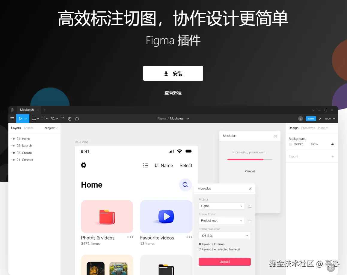 摹客Figma插件专为提高设计交付效率而生,可以将Figma设计稿一键导入摹客,轻松分享演示,实现在线评审、获取切图标注、版本任务管理等功能,是全面提高设计团队生产力必备的利器!