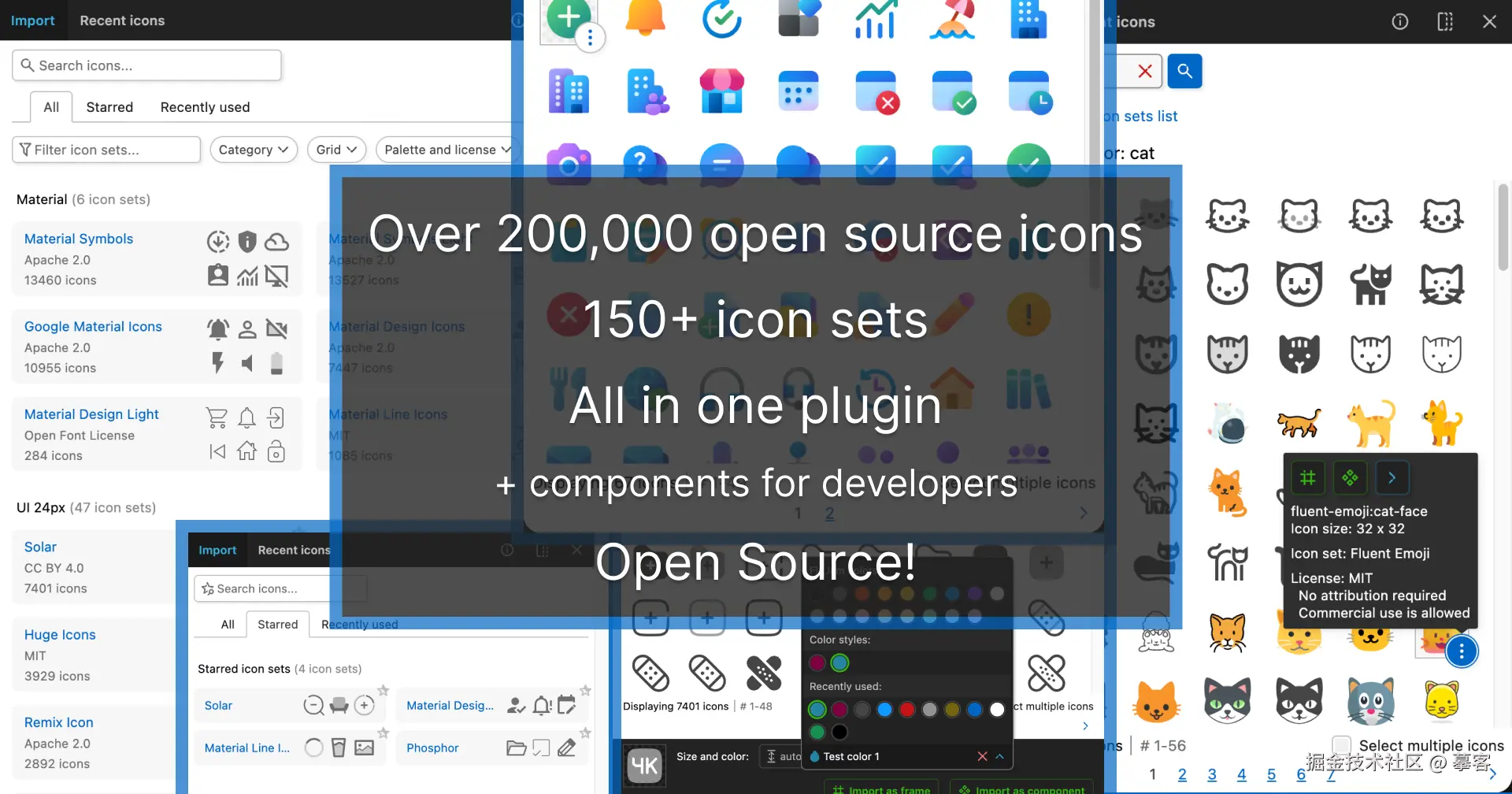 Iconify 插件是设计师不可或缺的图标资源库工具,集成了 100 多个流行的图标集,包括 Material Design、FontAwesome 和自定义 SVG 图标。通过这款插件,用户可以快速在设计中添加图标元素,减少制作或寻找图标的时间成本。