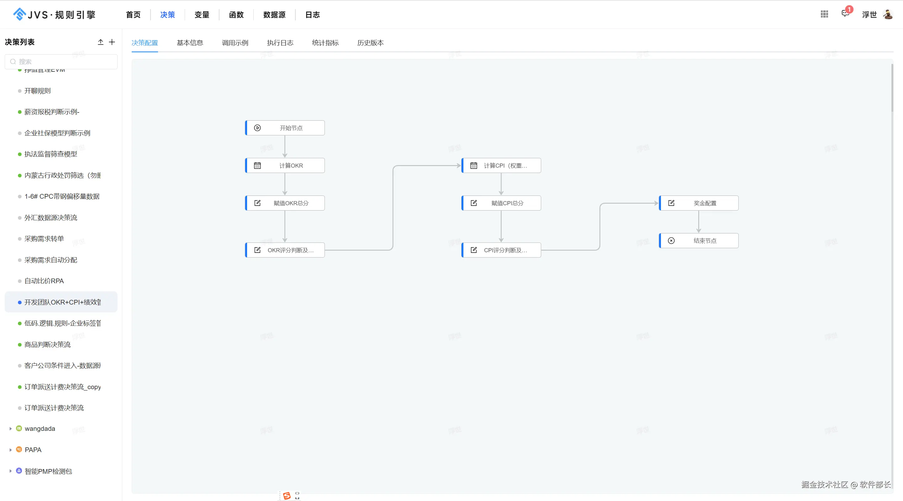 考核采用了 OKR+CPI的考核方式(这个当然是人事最后她们的专业制定出来的),我们通过JVS-rules规则引擎实现考核的结果。