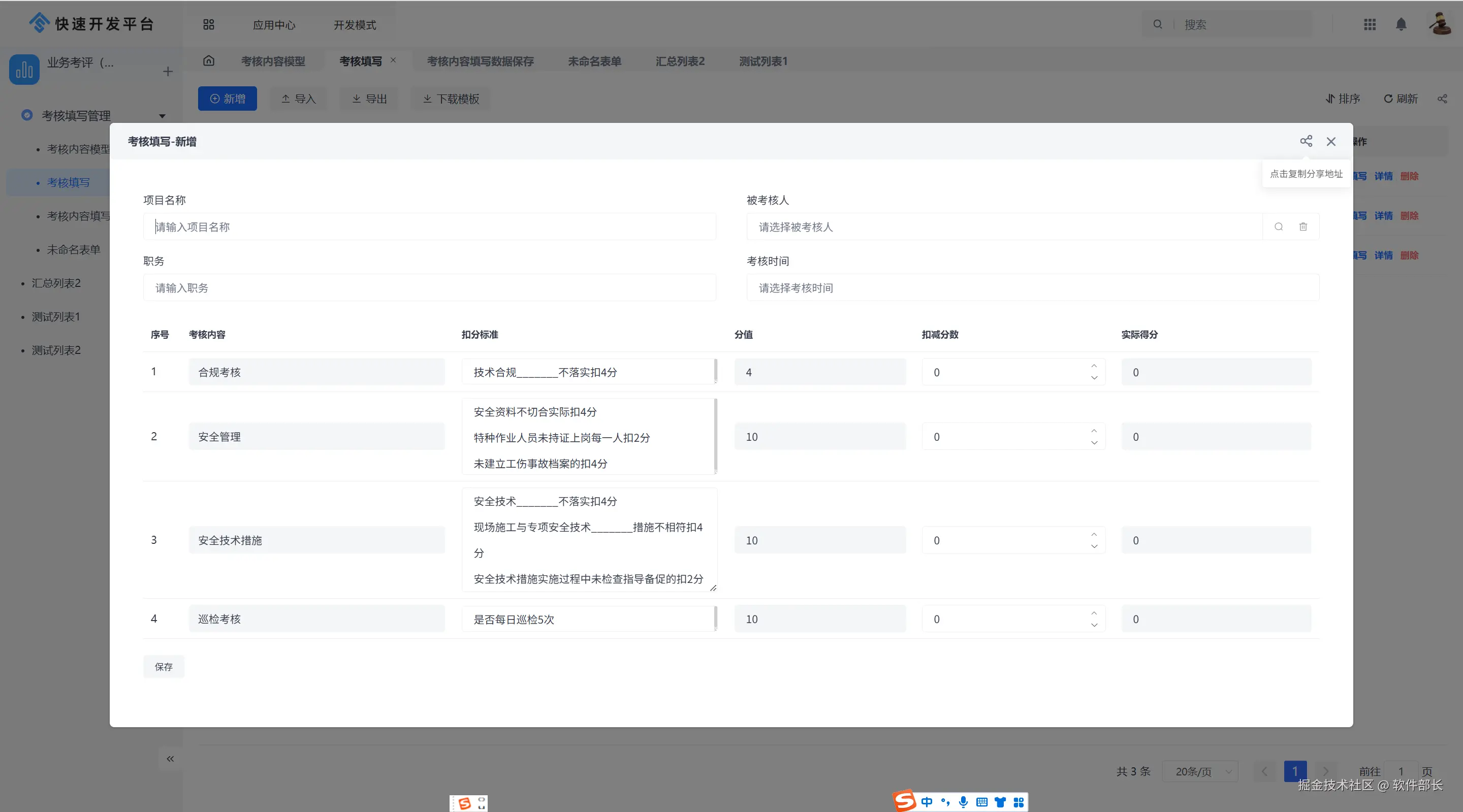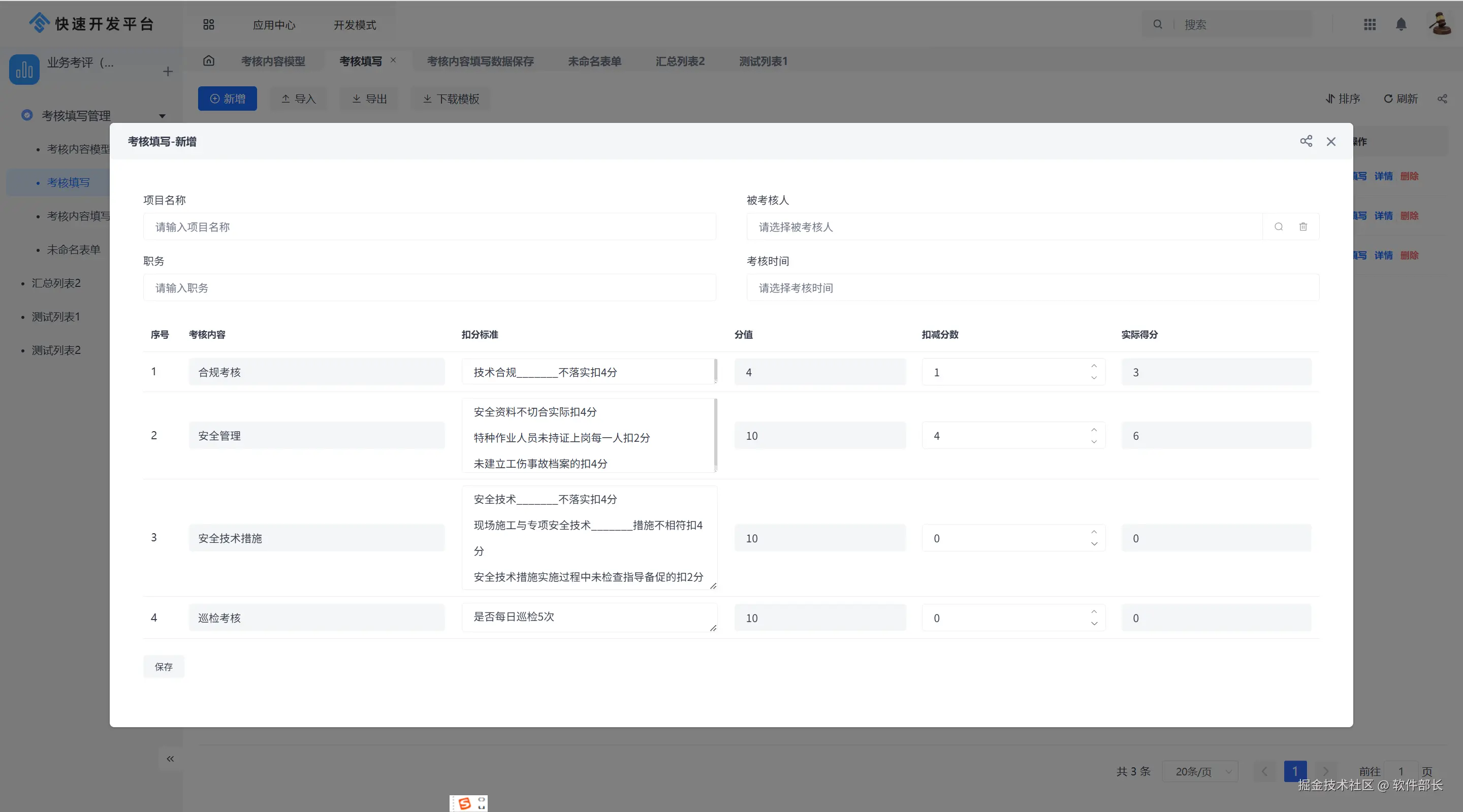 那么我们只能硬着头皮上呗,考核系统直接采用JVS快速开发平台,配置一个。