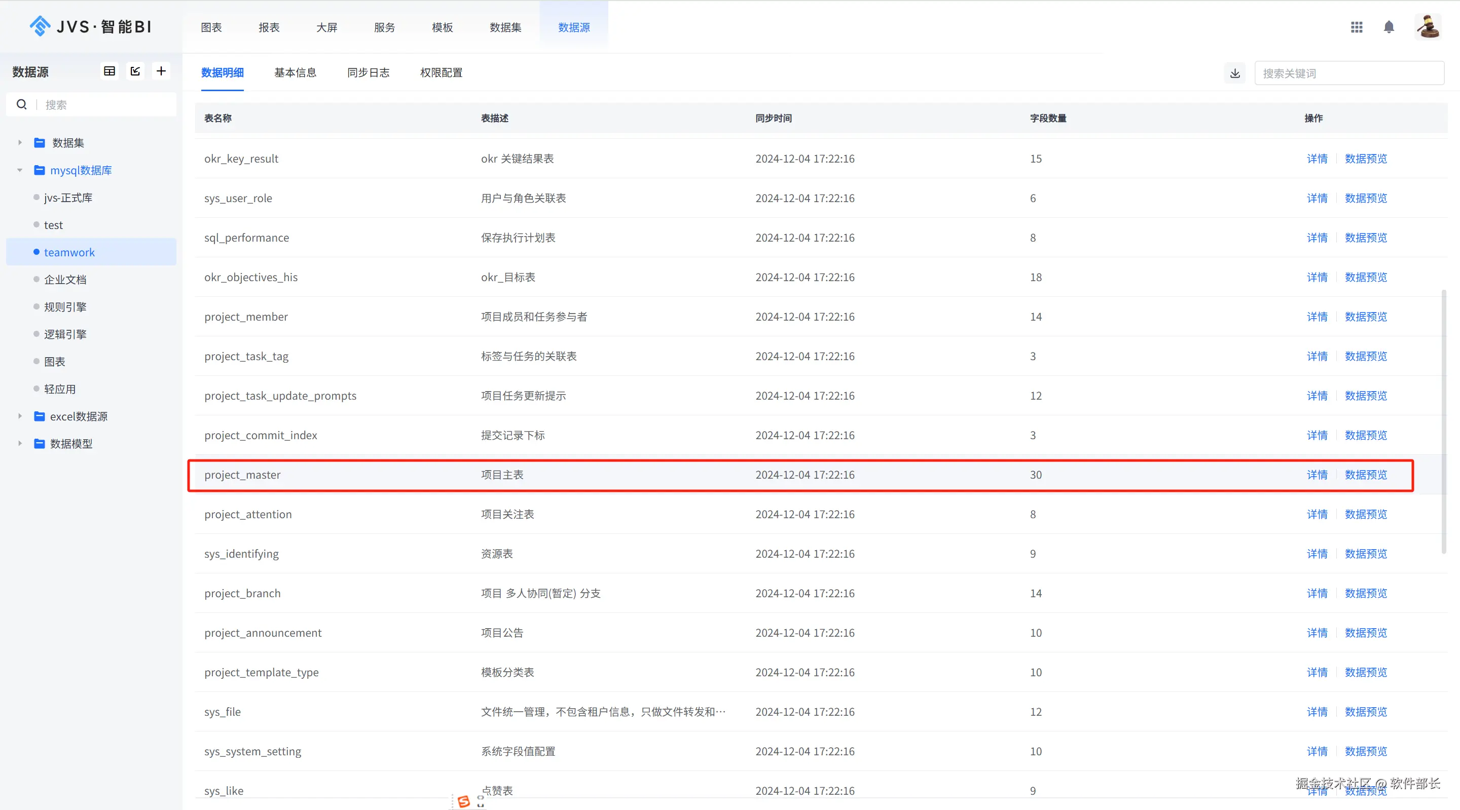 直接通过JVS-BI中 ,对teamwork 的任务数据进行分析加工,得到要判断的基础数据(这个数据加工过程有多个数据表、多个业务系统):