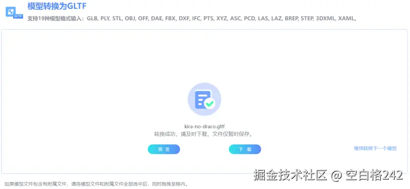 在等待一段时间后,网站完成了模型格式的转换,展示页面如下。