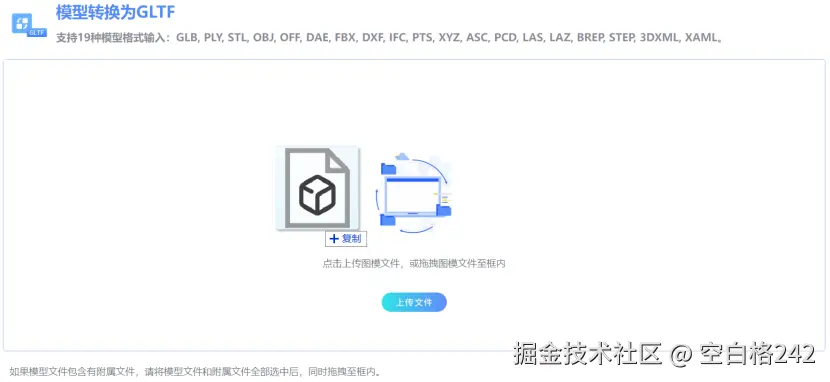 3D模型在线转换是一个可以进行3D模型格式转换的在线工具,支持多种3D模型格式进行在线预览和互相转换。
