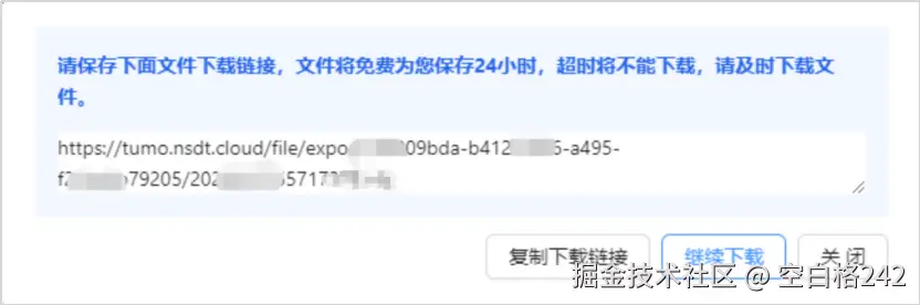通过B3DM转XYZ网站生成的下载链接,可以将XYZ格式的模型文件下载到本地。生成的下载链接24小时内有效,超时将不能下载,需要及时下载文件。