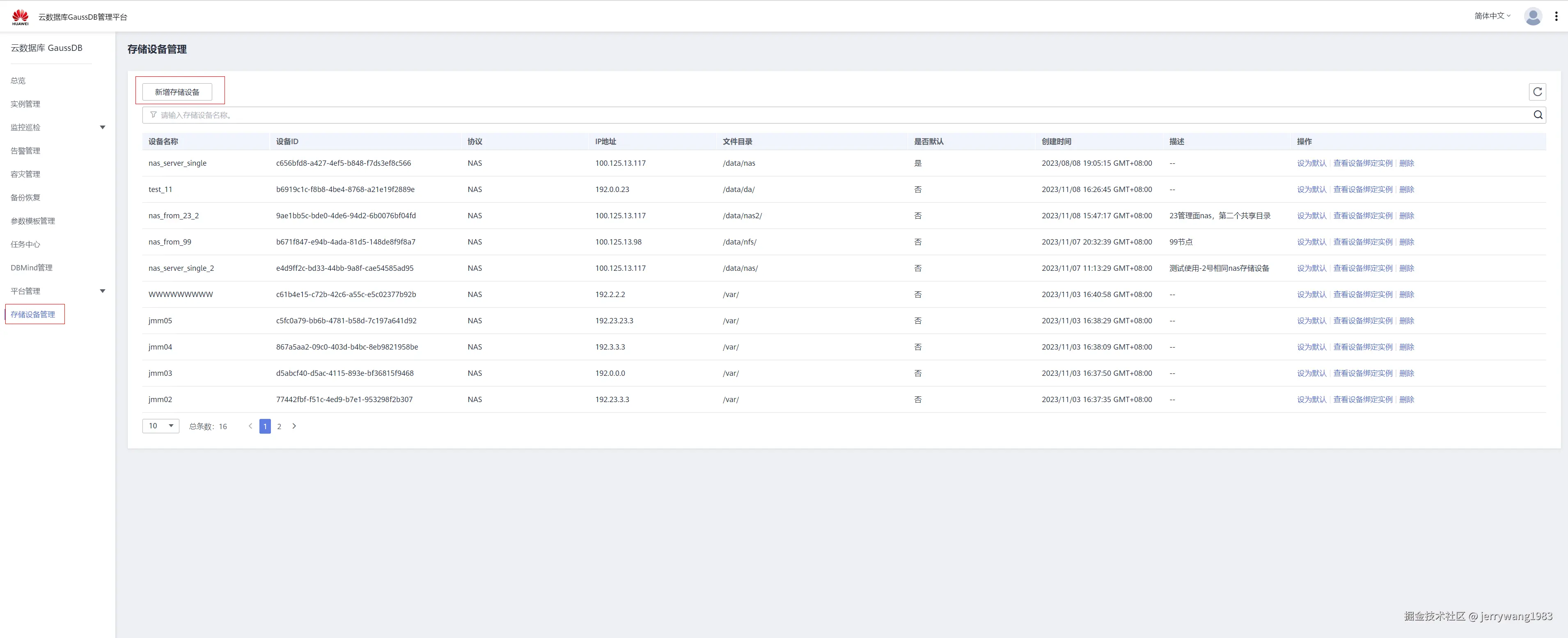 参数名称 参数说明 设备名称 NAS设备名称。最小长度4字符,最大长度64字符。可包含字母、数字、下划线。需以字母、数字开头,且每个下划线字符间必须为字母或数字。 协议 NAS设备数据传输协议,固定使用NAS。 IP地址 NAS设备的IP地址,仅支持IPv4。 文件目录 备份文件在设备上存储的根路径。最大长度255字符。必须以左斜杠开头,左斜杠之间字符必须为字母、数字。 描述 设备描述信息。