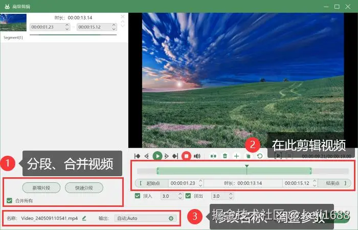 步骤3:录制完成后可以即时预览视频录制的效果,进入 【高级剪辑】 中可对视频进行分段、剪辑、增加特效等操作。还可以修改视频名称,调整参数后进行保存和分享。