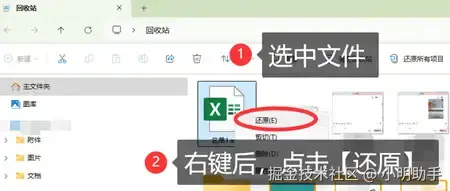 方法2:在回收站中找回误删文件后操作还原