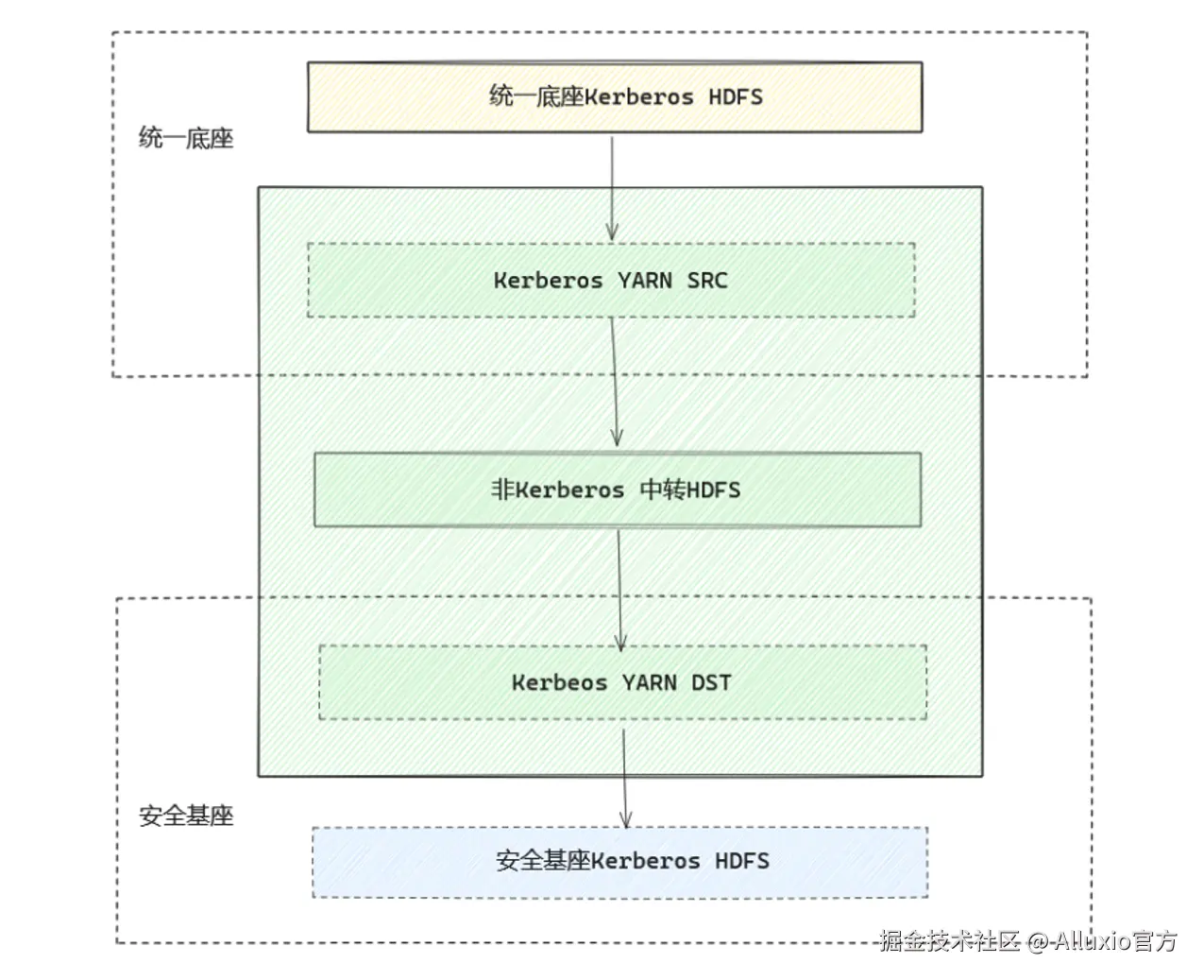 - 非 Kerberos HDFS 作为中转集群;