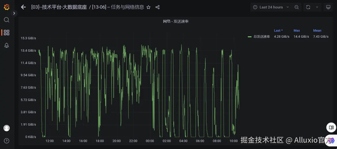 基于 Alluxio 数据流转方案的带宽使用情况展示: