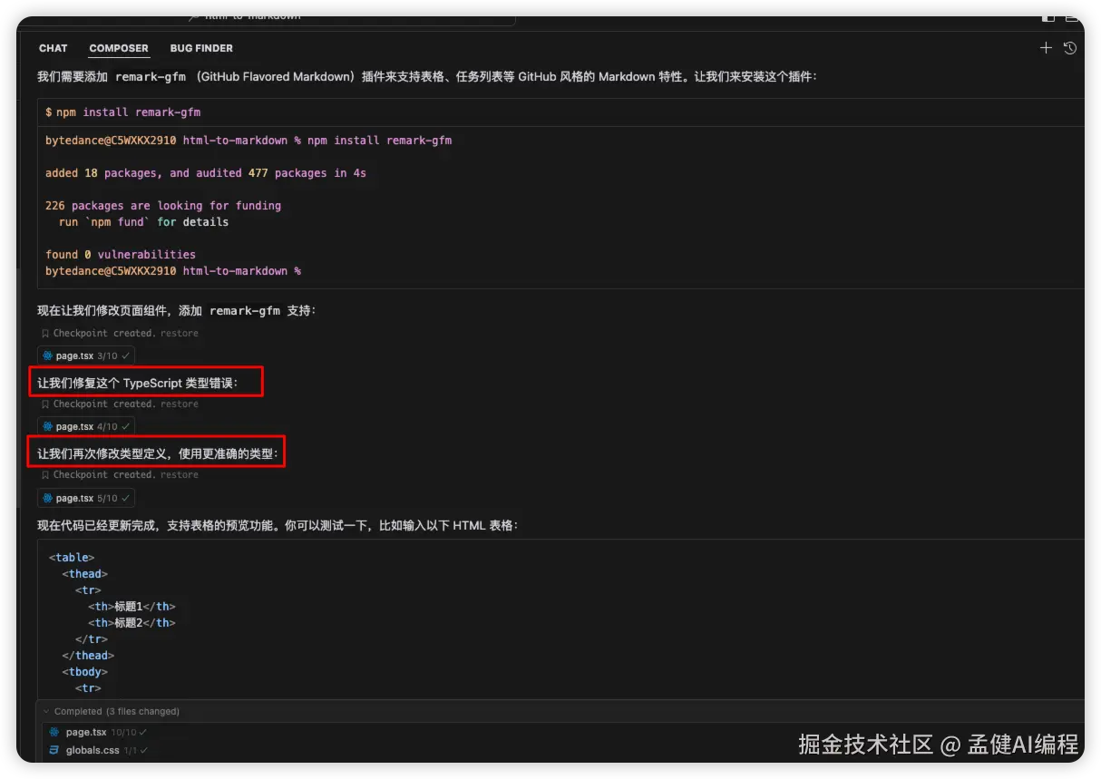 Agent模式下,Cursor会自动检测出lint问题,并且重复循环进行修复,直到问题被解决为止: