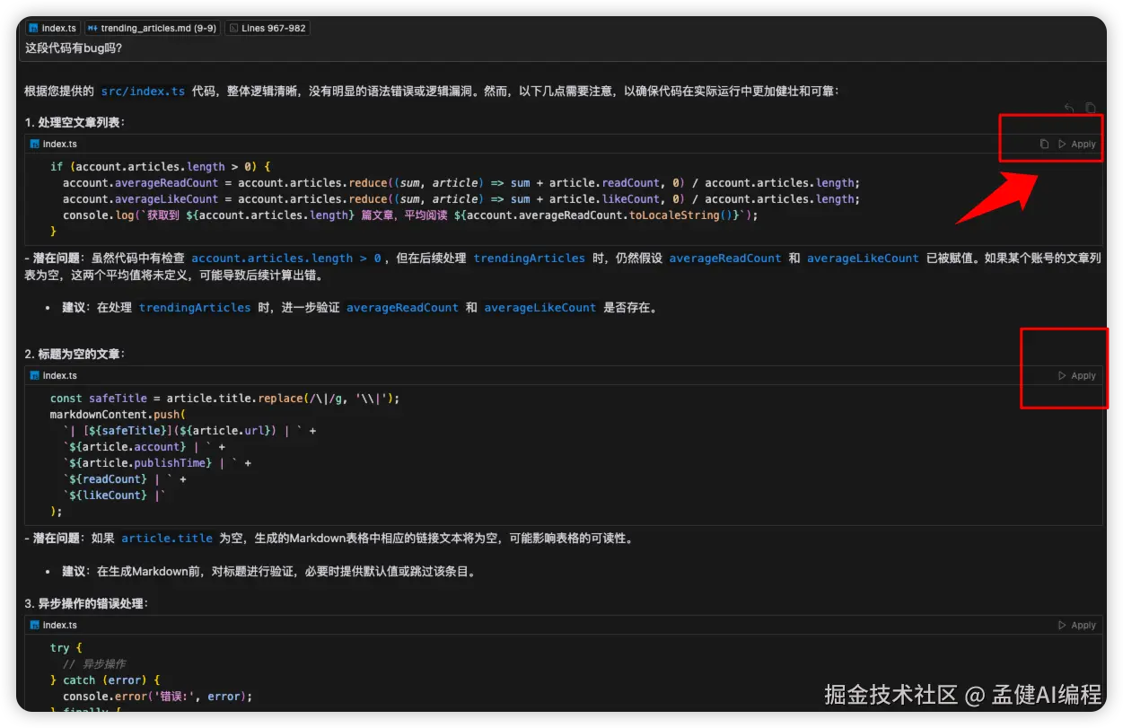 - 一键应用AI建议的代码修改