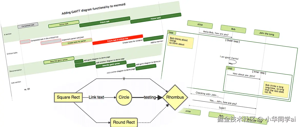- 简单易学:Mermaid 的语法简单易懂,即使没有编程经验的用户也能快速上手。