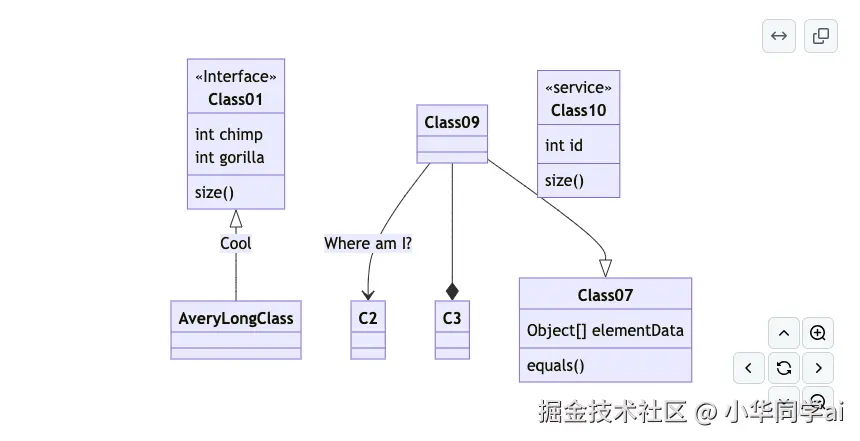 Class01 <|-- AveryLongClass : Cool