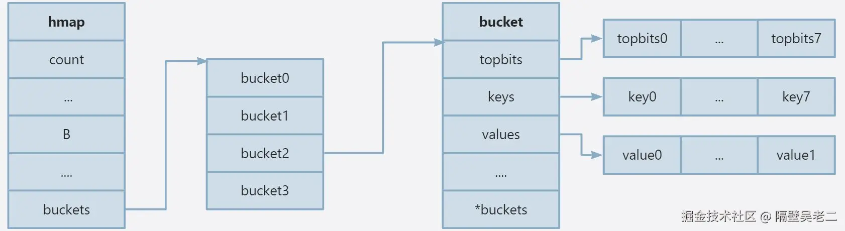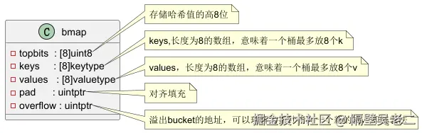 bucket数据结构由 runtime/map.go/bmap 定义(注意这是编译之后的):