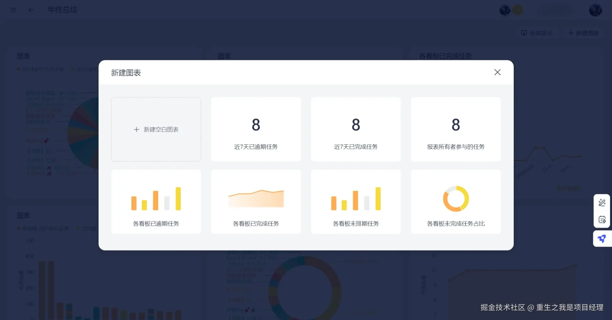 仪表盘是一组图表和指标的汇总,展示项目的健康状况、进展和关键绩效指标(KPI)。 通过仪表盘,团队可以实时监控项目的各项指标,如进度、预算、资源使用等。