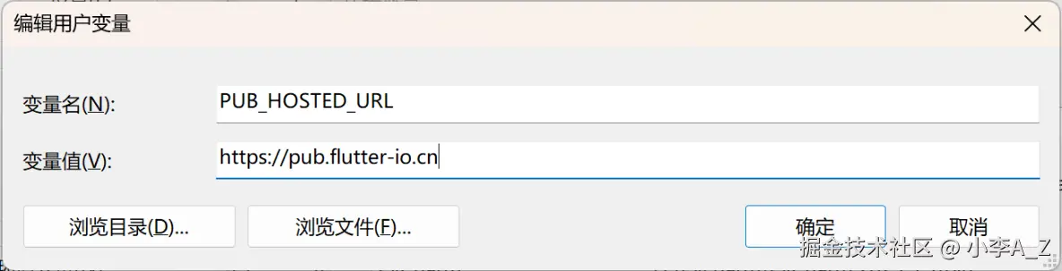 - 新建 变量 PUB_HOSTED_URL,其值为pub.flutter-io.cn