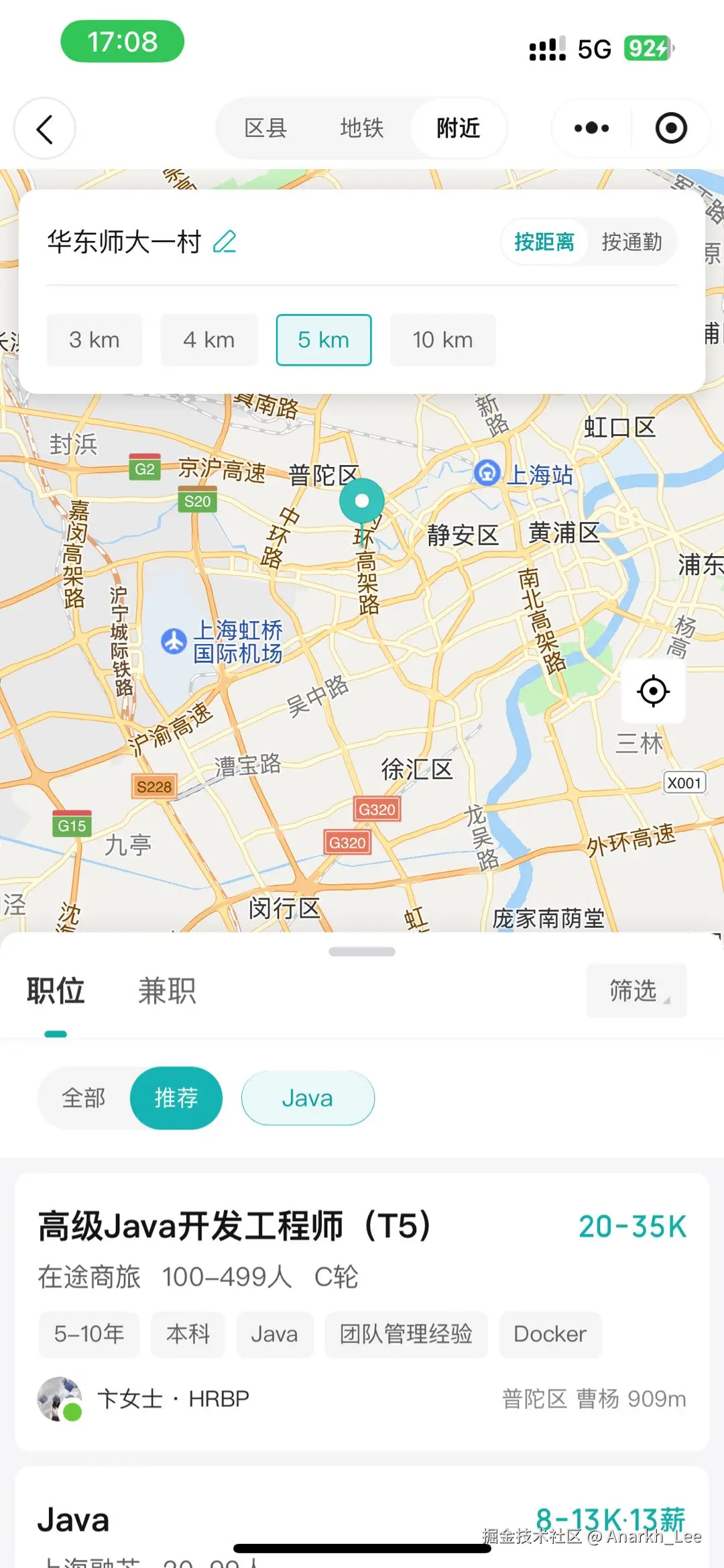 :::color1 在微信小程序中依托腾讯地图实现查询附近职位,要求能够查询附近3km、5km、10km等职位数据(类似于Boss直聘中的“附近机会”功能)。