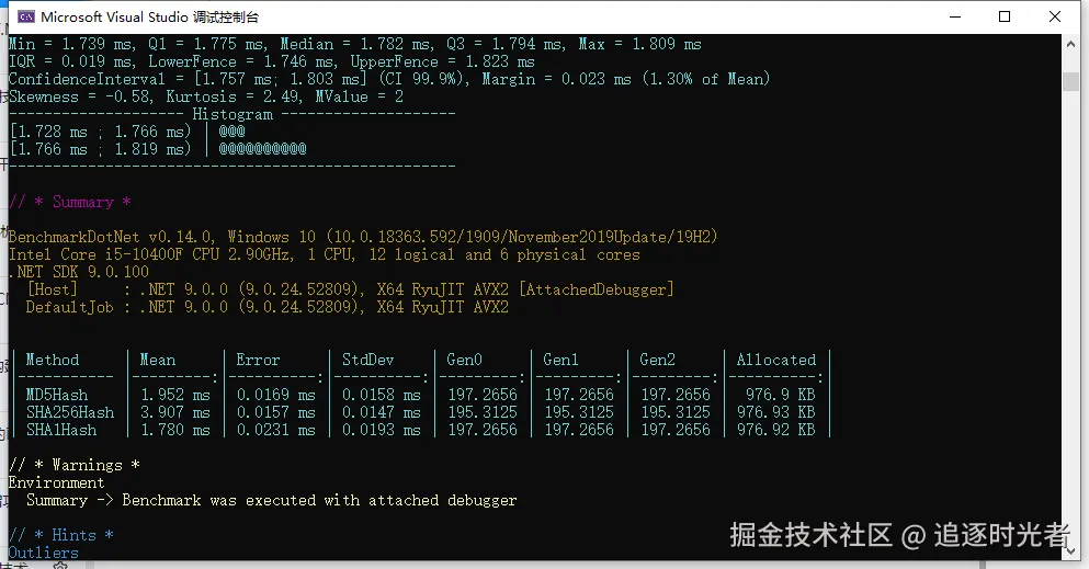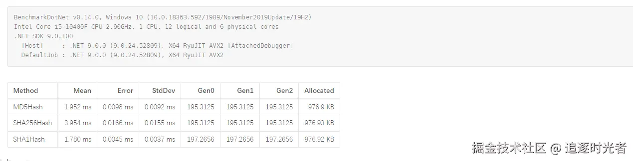 接下来我们对.NET中常见的三种加密哈希函数:MD5、SHA256、SHA1进行性能基准测试,来一起分析一下哪一种哈希算法性能更优、效率更快。