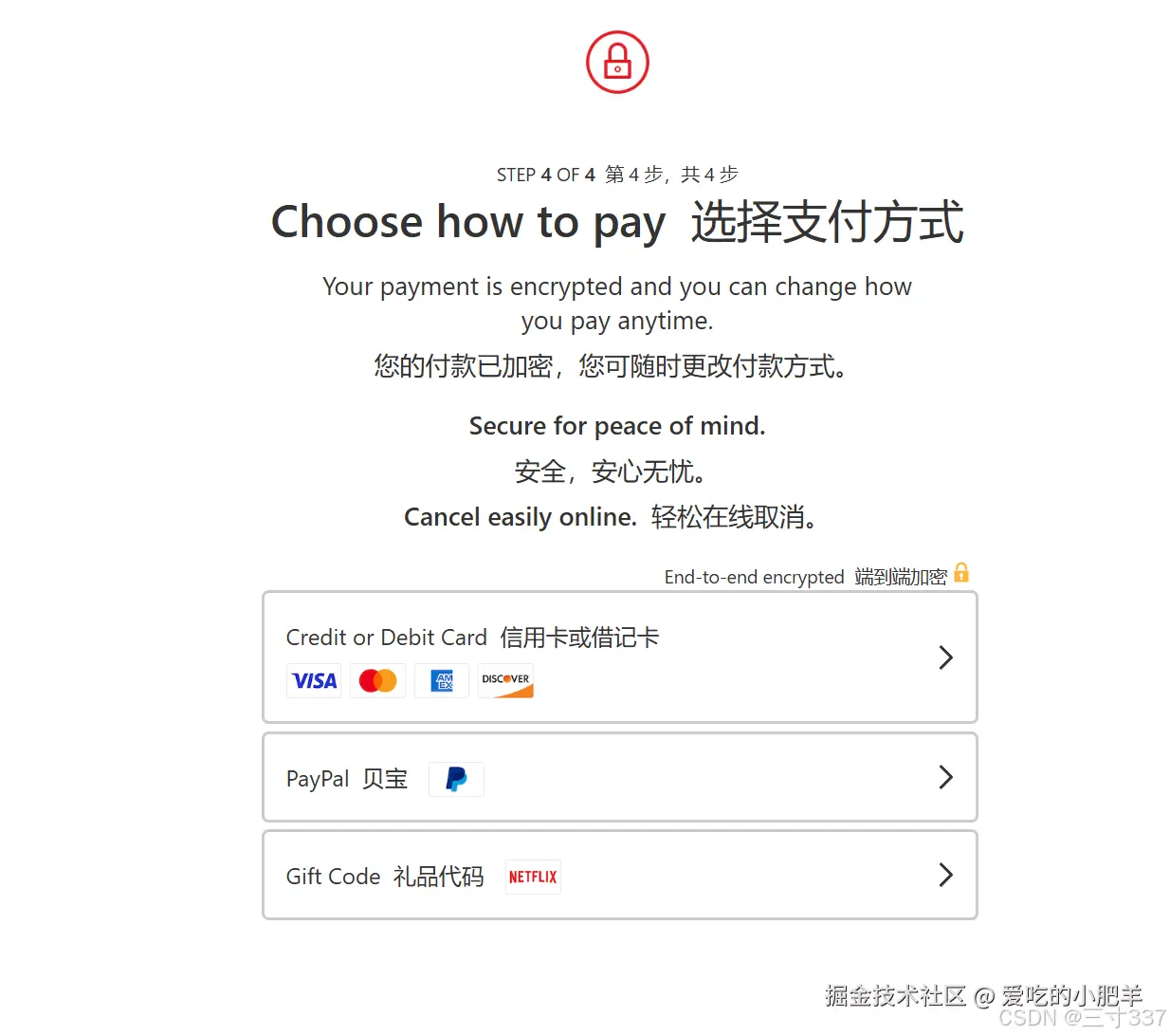 把刚刚在wildcard平台上申请的支付卡片中信息填写到奈飞的订阅界面。