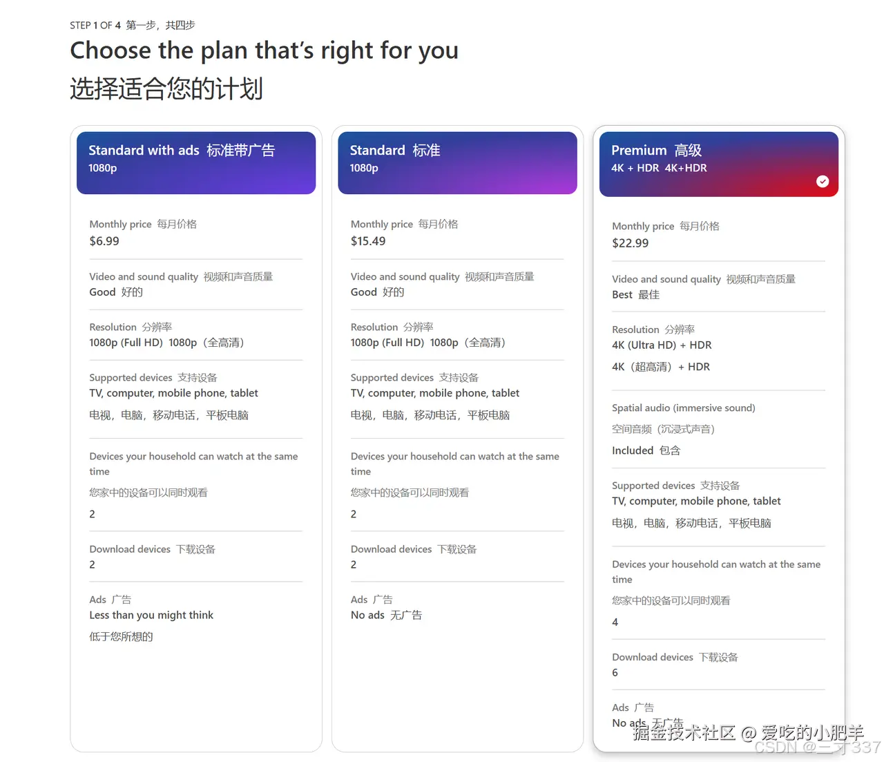 *注:奈飞在注册时就需订阅套餐。 *编辑