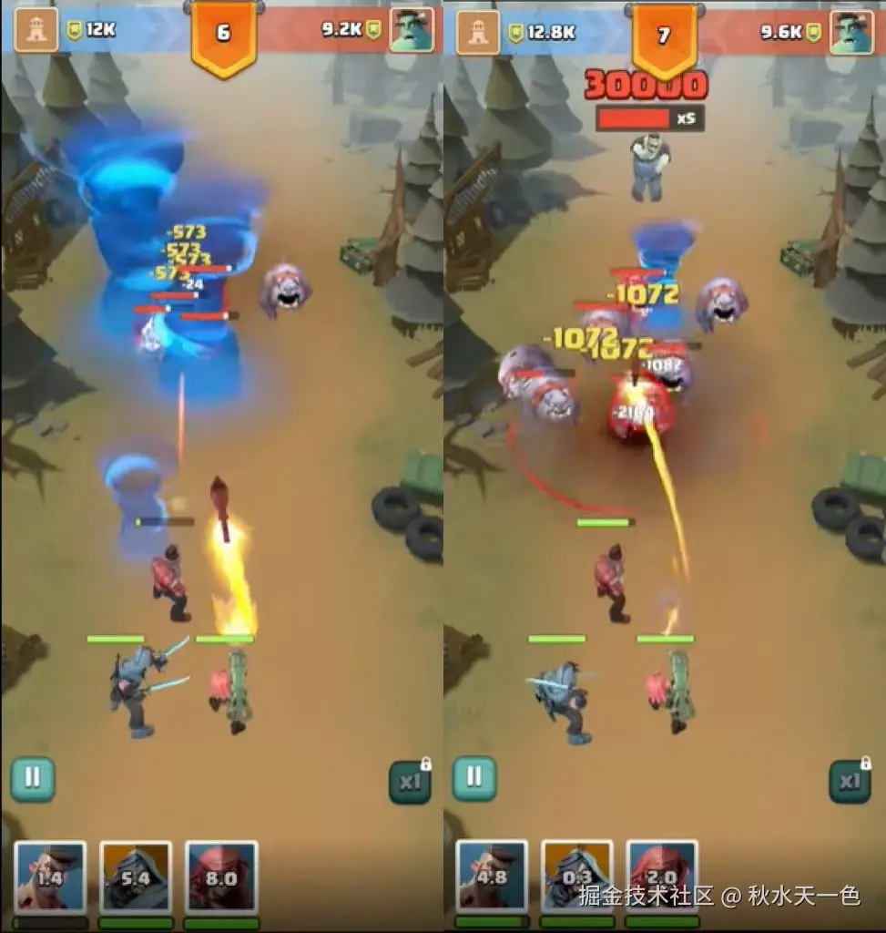 在战斗关卡的设计上,借鉴了最近热门的 “加减数字门割草玩法” 。然而,不同的是,【Dark War】去除了数字门的元素,转而采用了固定位置的战斗布局,战斗过程中玩家也不会获得物品或资源的掉落来提升角色战斗力(感觉可玩性相较于可移动的数字门玩法有所降低)。