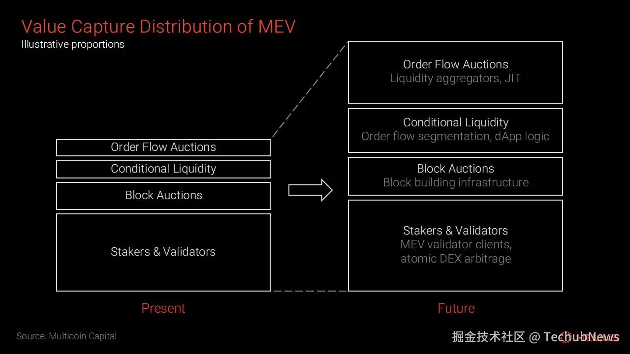 上图: MEV 的价值捕获分布 (来源:Multicoin Capital、Tushar Jain)