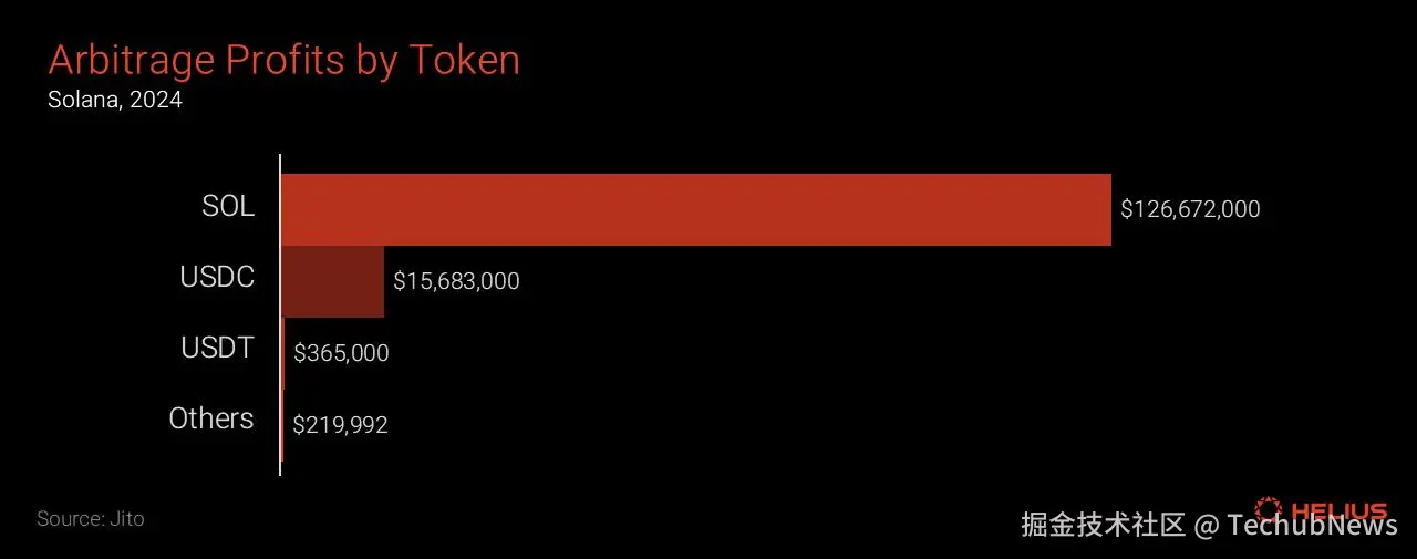 上图: 2024 年按代币划分的套利交易利润 (数据来源:Jito)