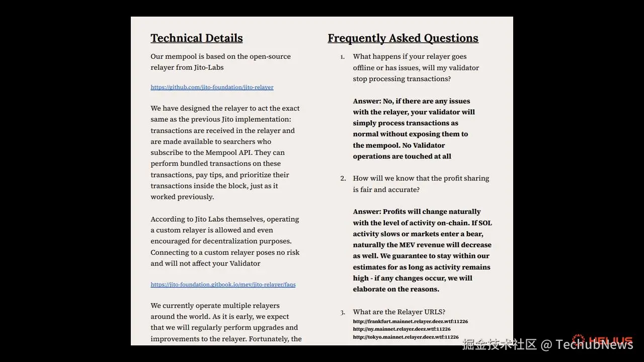 上图: DeezNode MEV 提案中关于「DeezMempool」的部分内容 。在 Jito Mempool 被暂停后不久,多个验证器报告收到了 DeezNode MEV 提案。
