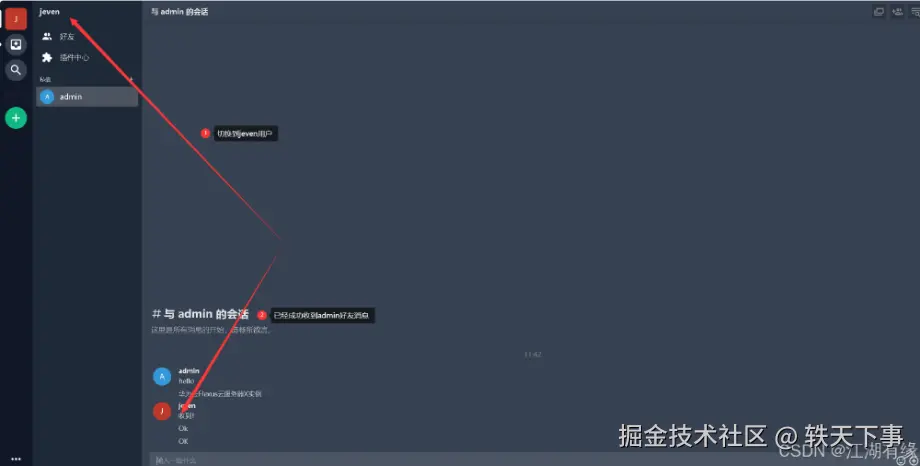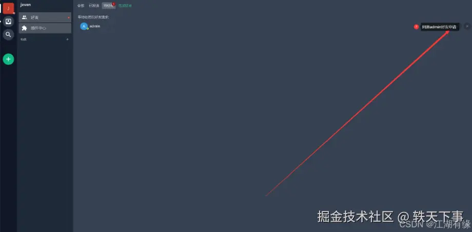 我们再次切换到 jeven 用户,同意好友申请即可。