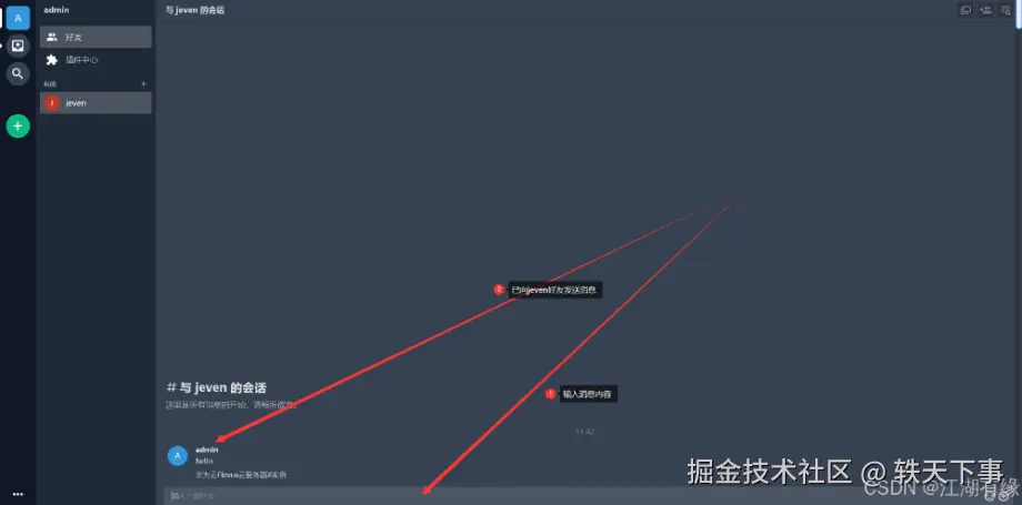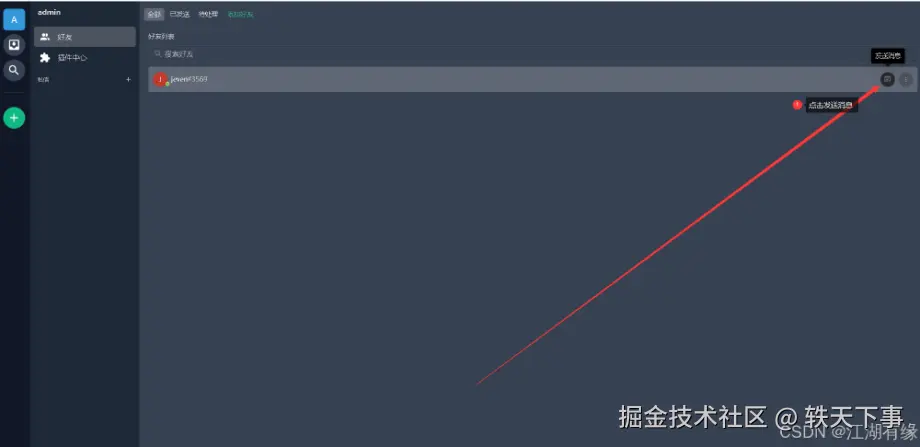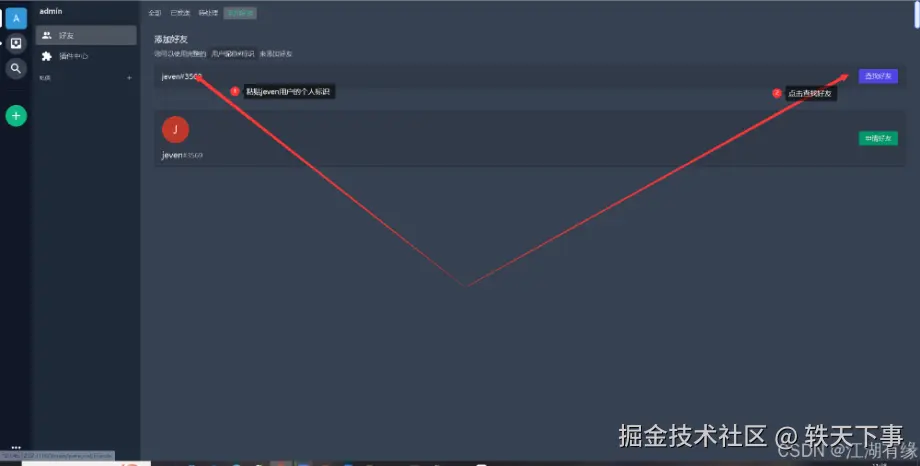 我们切换到 admin 用户下,将 jeven 用户的个人标识粘贴到查找栏,点查找好友。