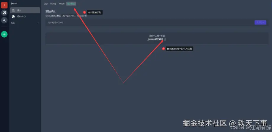 我们复制刚注册 jeven 用户的个人标识,用于 admin 用户查找添加好友。
