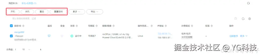 点进来后我们可以看到我们所拥有的资源,并可以对其进行开关机\更改密码、配置等一系列操作