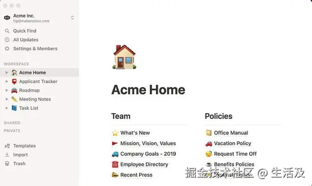 示例:产品团队使用Notion创建产品需求文档,并链接相关任务。