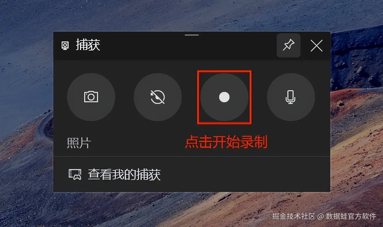 步骤2:点击“捕获”唤出录制页面。然后点击界面上的实心白色小圆圈或使用开始录制。录制完成后,同样可以通过Xbox Game Bar的界面停止录制。