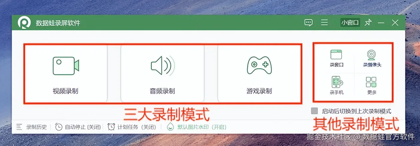 录制电脑屏幕视频方法二:数据 蛙录屏软件