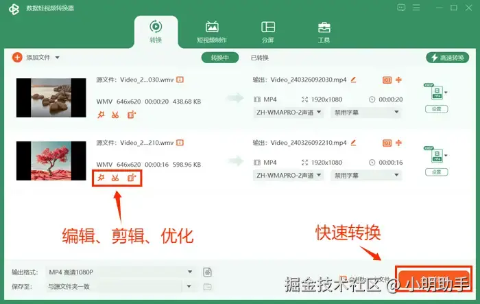 方法二:使用专业视频转换软件将wmv转mp4