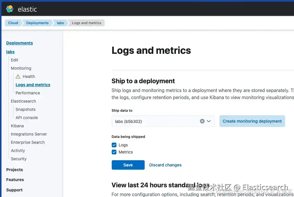 第一步是在集群中激活日志记录。建议将日志发送到其他集群(监控部署),但在开发环境中,你也可以将日志发送到索引文档的同一集群。