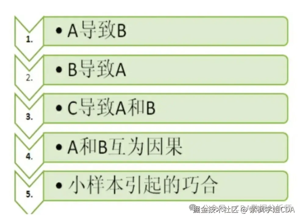 相关不等于因果,但因果必相关;因果关系是相关关系的子集;相关关系可以为寻找因果关系提供指引和线索;采取改善措施要针对真正的原因来改善,而不是针对相关关系采取措施。