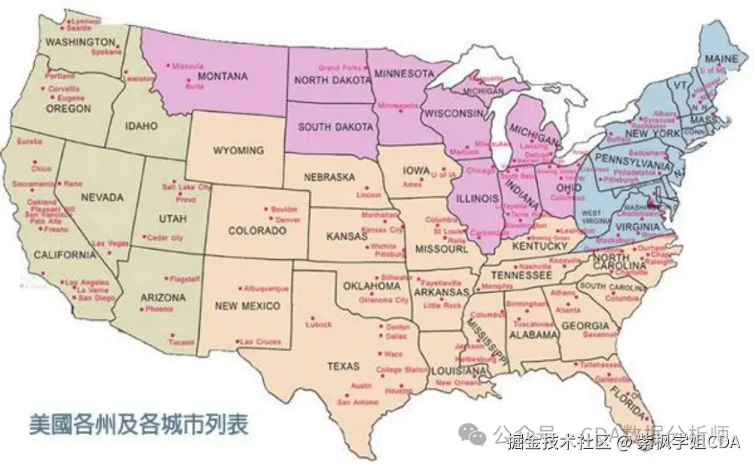 - 美国中西部、南部、西部的区域的县的人数很少,以县为单位统计肾癌发生率时样本量较小,发生率波动很大。