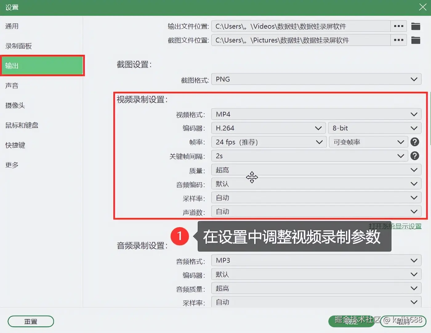 步骤1:打开软件,在首页左上角选择合适的录制模式,并自由调整录制区域、摄像头、声音等参数。 进入【设置】中,同样可以对录制参数进行更为细致的调整,如调整录制格式、质量等内容。