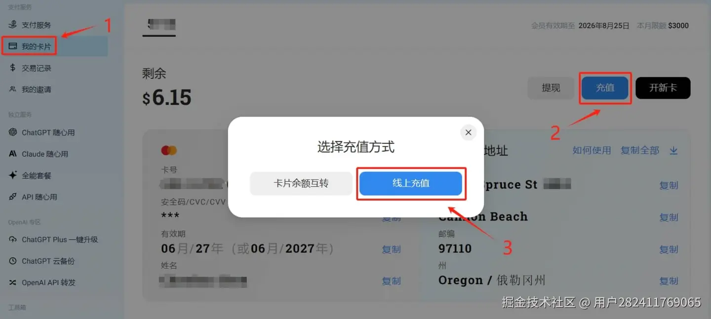 在订阅页面,选择信用卡支付方式。输入你申请的虚拟信用卡卡号、有效期以及CVV码。