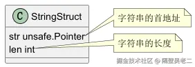 源码包 src/runtime/string.go:stringStruct 定义了string的数据结构: