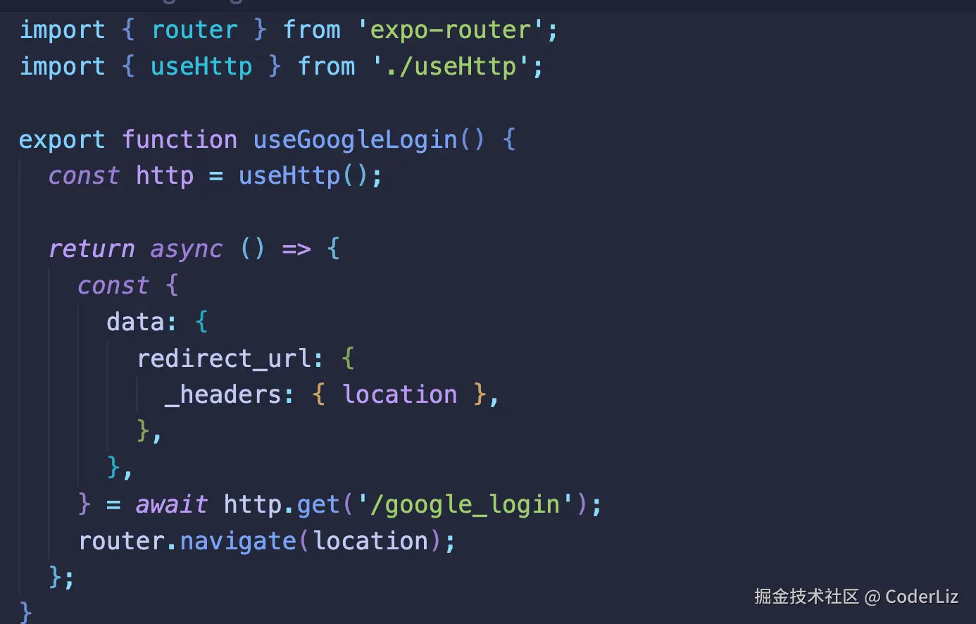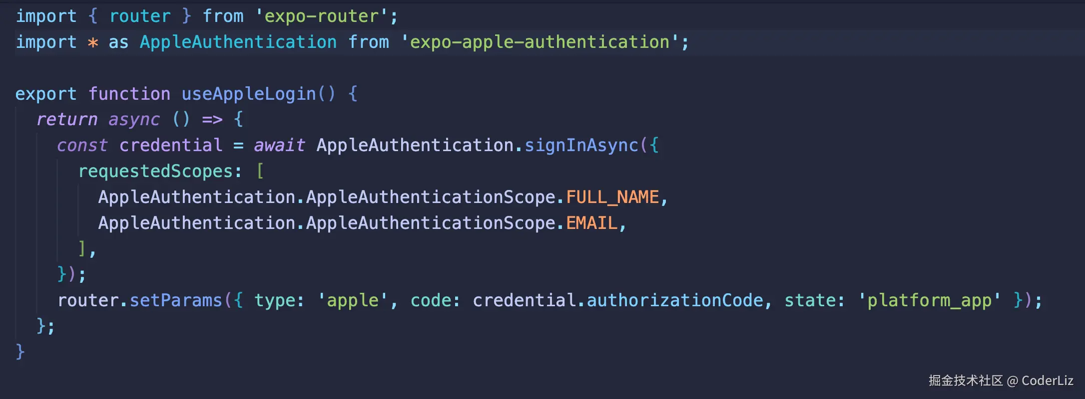 前端使用的是expo集成的库,然后调用登录方法,返回授权码,所以app端的这一步相当于网页端的第一步。